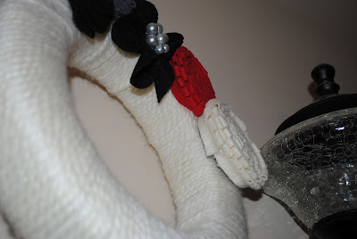 I bought all of the felt and yarn at Michael's craft. I bought a gray strand of pearls, that was 50% off. I intended to make more flowers with the pearls, but I didn't want to overload the wreath with flowers.